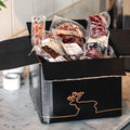 The meat is shipped vacuum packed and frozen.